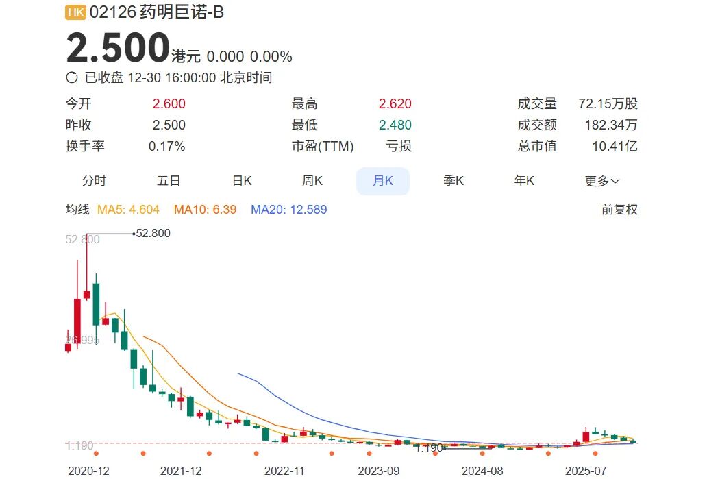 只是,2021年以来,药明巨诺每年亏损6-8个亿左右,合计亏掉约30个亿,5年来股价也一路下跌,市值已剩10亿港元左右。
