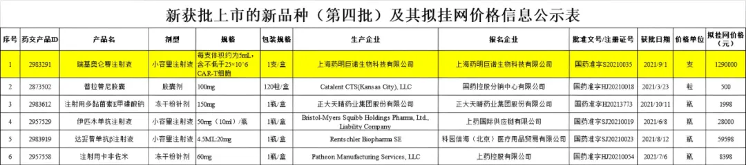 目前,国内上市的CAR-T疗法共7款,价格普遍在100万元左右,药明巨诺的倍诺达,定价最高,为129万元/针。