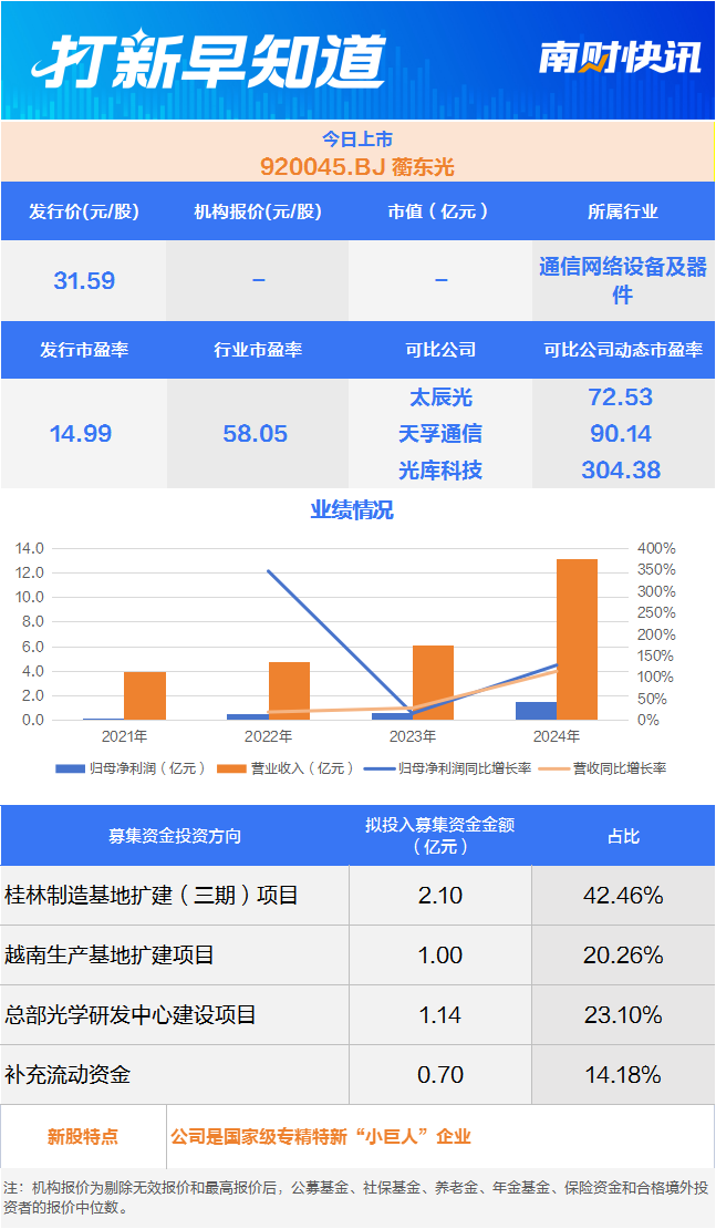 12月31日,有两只新股上市,为北交所的蘅东光(920045.BJ)与创业板的新广益(301687.SZ)。