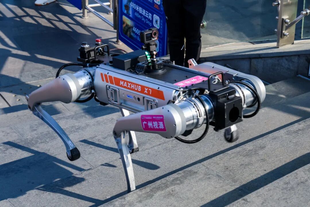 在多足机器人组,四川铱新凌润科技的宇树B2工业级四足机器狗获冠军及最佳攀爬效率奖,广州视源电子的四足机器人MAXHUB X7获亚军及最佳越障突破奖。