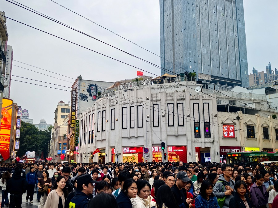 (图注:元旦的广州北京路步行街,人潮汹涌,聂新鑫摄)