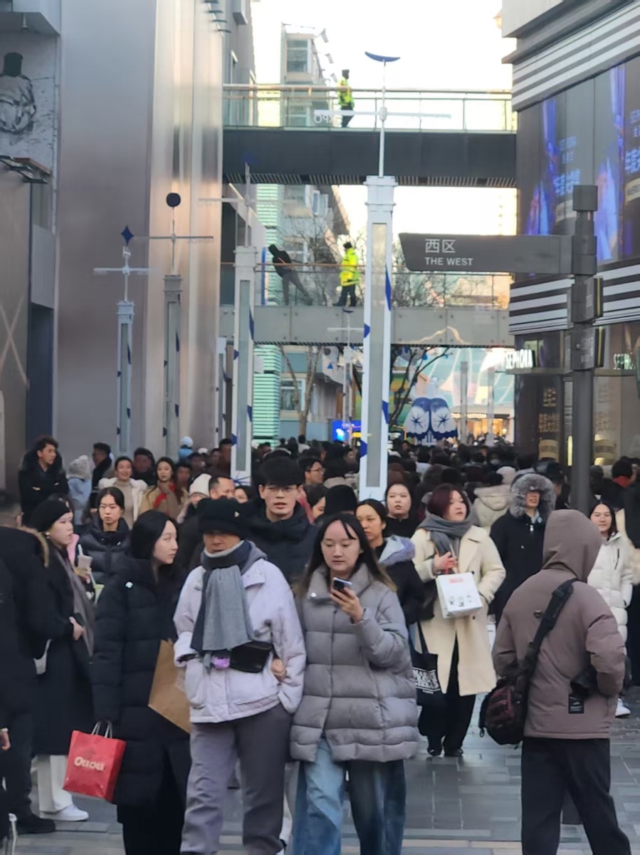 (图注:元旦北京三里屯逛街的人潮,彭思雨摄)
