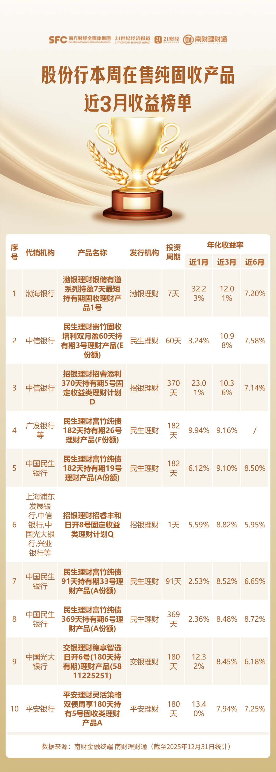 为提供有效的选品参考,榜单展示了产品近一月、近三月及近六月的年化业绩,并按照近三月年化收益率进行排序,以此反映其在近期市场波动中的多维度收益表现。