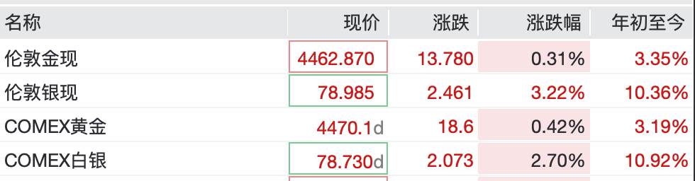 白银大涨3%,黄金站上4460美元