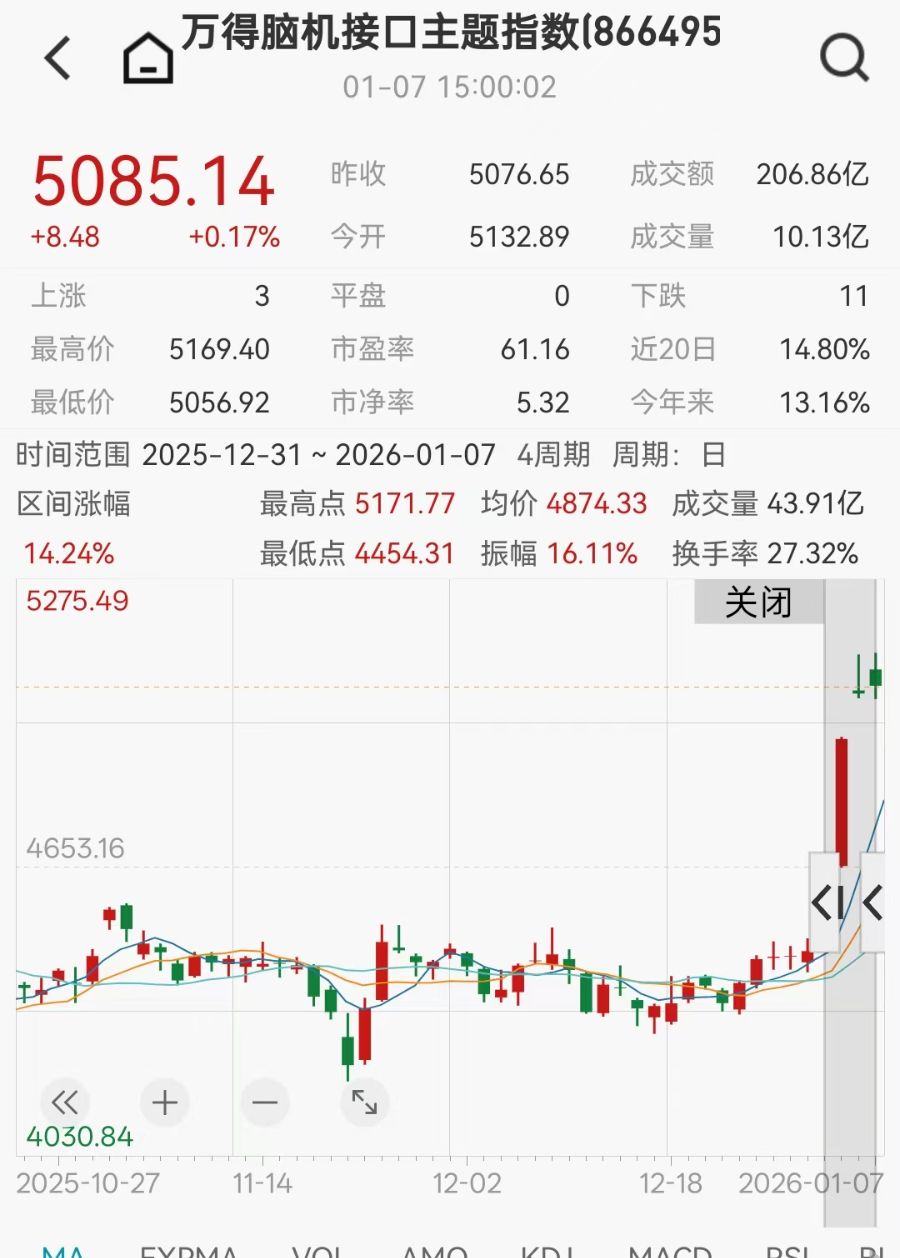 受消息面影响,1月5日-1月6日,A股脑机接口概念掀起涨停潮。1月7日,脑机接口概念股有所回调。
