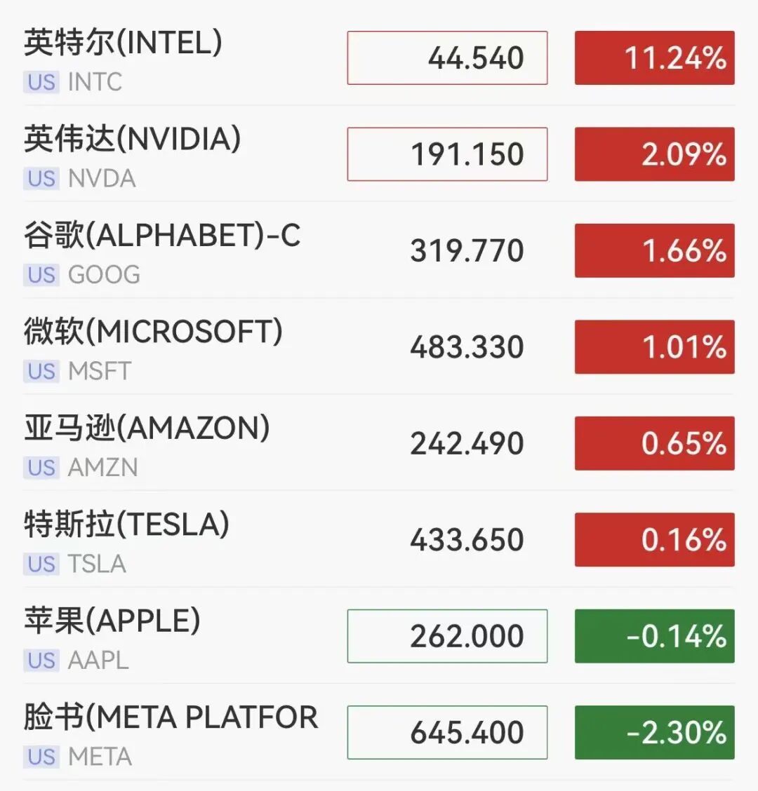 大型科技股涨多跌少,其中,英特尔大涨,涨幅超11%,创9月18日以来最大涨幅,消息面上,英特尔日前在消费电子展(CES)上推出下一代PC平台处理器酷睿Ultra3。此外,英伟达涨超2%,谷歌、微软涨超1%,脸书跌超2%。