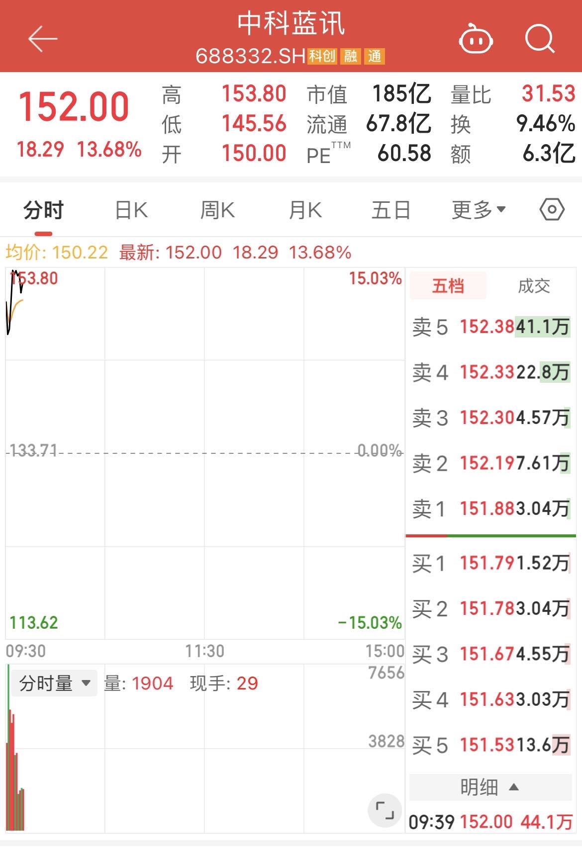 1月8日,主营无线音频芯片的中科蓝讯(688332.SH)股价迎来强势拉升,公司股票跳空高开12%,后震荡上行,截至当日9时39分,报152元/股,涨幅达13.68%,总市值攀升至185亿元。