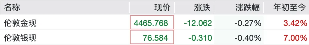黄金由涨转跌,白银持续下挫,截至11:05,现货黄金失守4470美元,日内下跌近0.3%;现货白银盘中一度跌近2%,目前跌幅收窄至0.4%,沪银期货主力合约跌逾1%。