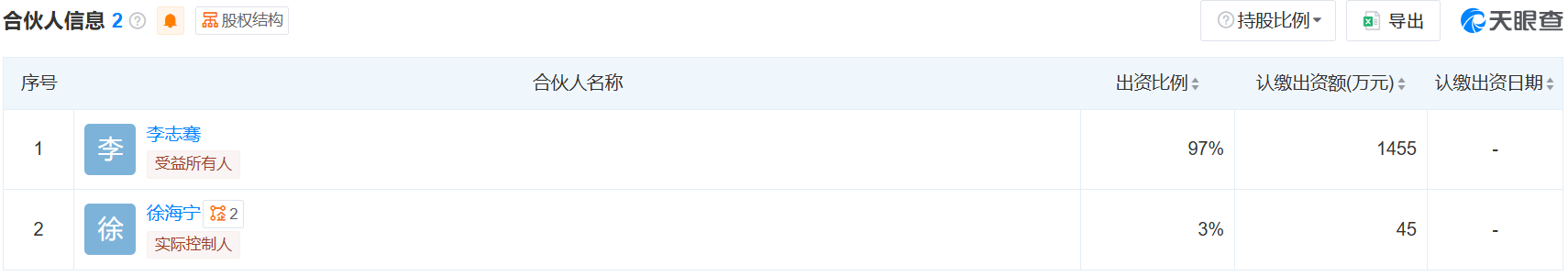 而上海秩汇明德企业管理中心(有限合伙)成立于2025年12月22日,注册资本1500万元,合伙人为李志骞与徐海宁,出资比例分别为97%和3%。