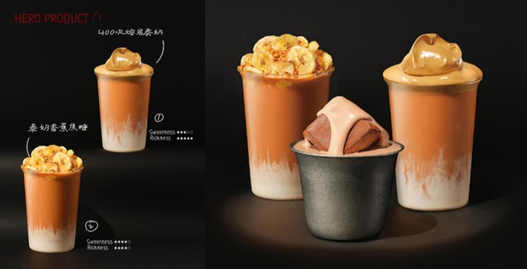 比如当下人气高涨的泰柯茶园招牌产品“咸法酪泰奶”,通过浓郁咸香的奶酪中和了泰奶本身的甜度。BLACK TREE·泰茶的招牌“400次熔岩泰奶”则将泰奶与咖啡、芝士酪乳相互融合,调和甜味的同时,使饮品层次和口感更加丰富。