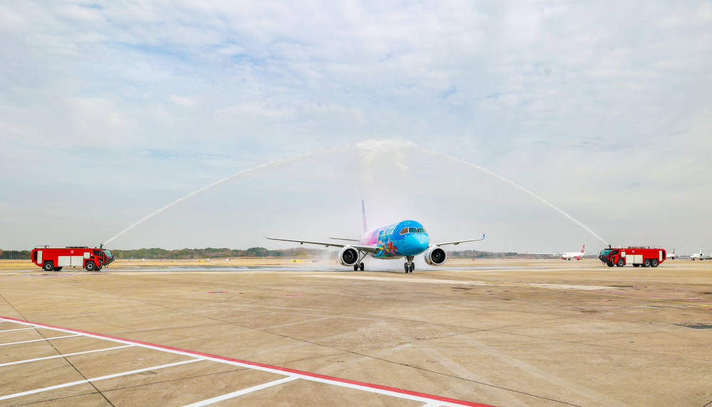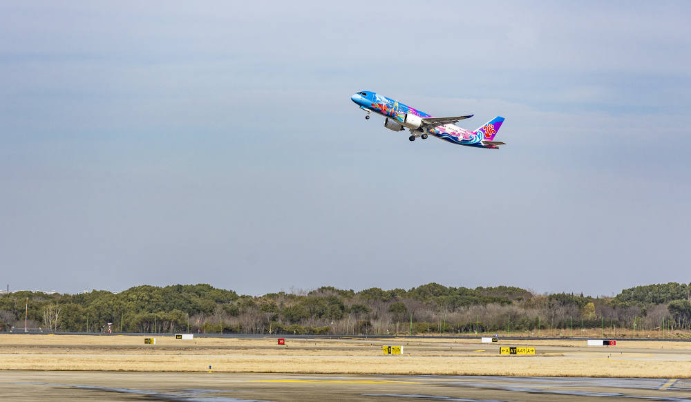 执行该航线的C919国产大飞机采用164座三舱布局,包含8个公务舱座位、18个明珠经济舱座位和138个经济舱座位。飞机全舱配置个人充电接口,可为旅客提供便捷舒适的乘机体验。