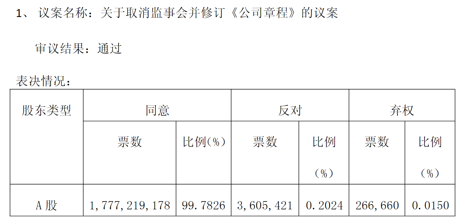图/财通证券临时股东会高票通过关于取消监事会并修订《公司章程》的议案