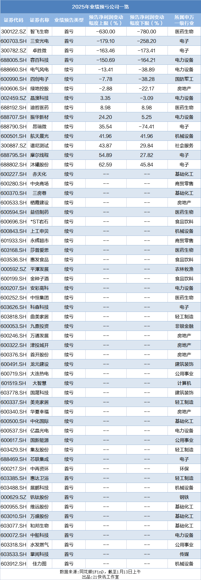 对于本轮年报预告季的反常态势,太平洋证券投资顾问赵欢向21快讯记者表示,监管导向与市场透明度要求提升,监管高压穿透,粉饰空间骤减,交易所明确要求,预计全年亏损或大幅变动,必须在1月底前发布预告,违规成本显著提升。可以让市场尽早消化负面信息,避免在年报集中期(通常是2-3月)因信息集中释放而导致股价剧烈波动。这体现了监管层对投资者保护的重视,鼓励公司“早披露、少冲击”。