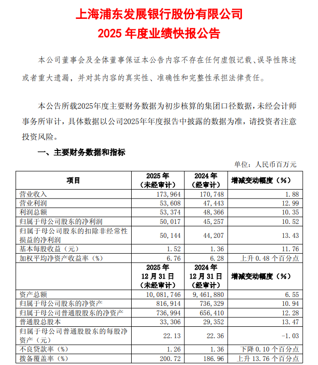 1月13日,浦发银行发布2025年度业绩快报,拉开了上市银行披露年度业绩的序幕。