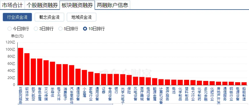 我查看了近10日的板块融资融券排行榜,具体如下: