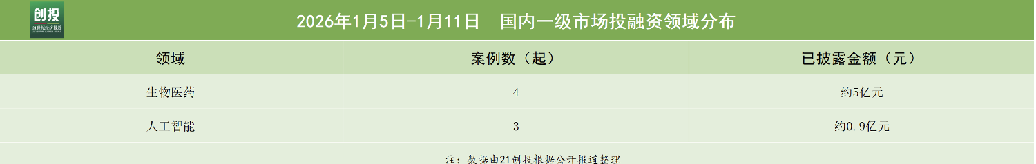 01、生物医药、人工智能赛道完成多笔融资