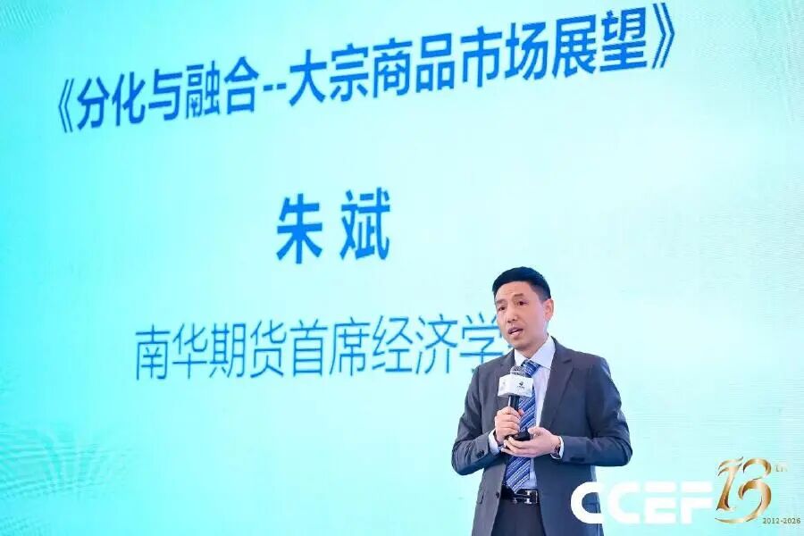 1月11日,在2026年中国首席经济学家论坛年会上,南华期货首席经济学家朱斌在主题演讲中表示,大宗商品市场在2026年将继续呈现分化态势,上半年尤其明显。
