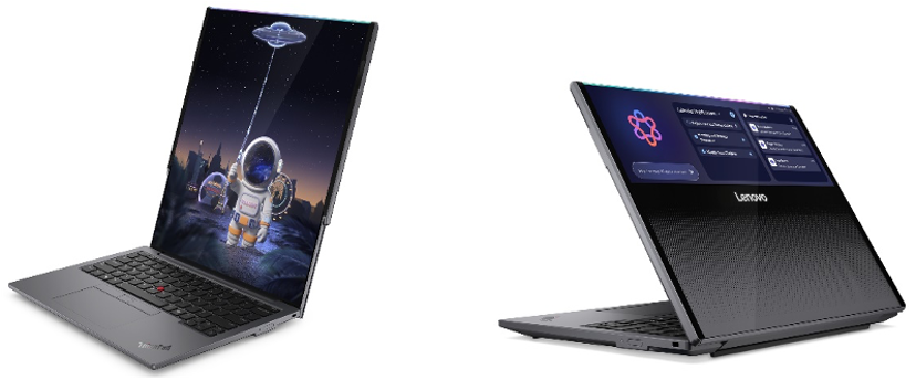这种对硬件形态的重新定义,还体现在屏幕可以“按需生长”的卷轴屏AI PC上。有可以竖着伸缩的ThinkPad Rollable XD概念AI PC,有可以横向延伸的Legion Pro Rollable概念AI PC。