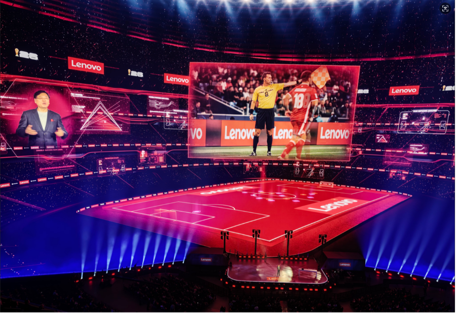 联想裁判视角AI视频增强系统。2026年FIFA世界杯期间,联想AI驱动的影像稳定增强技术将显著提升画面质量,为赛事转播提供多路信号源,并为球迷提供观赛“第一视角”。