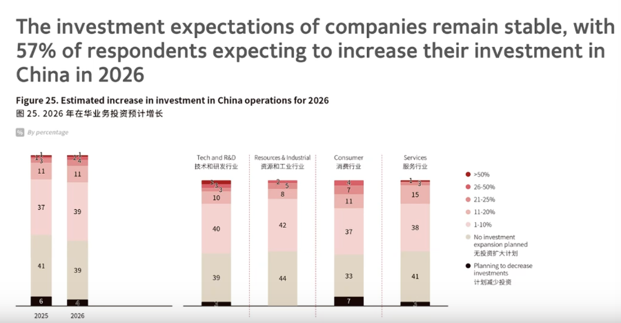“‘韧性’是本年度调查报告的核心关键词。”中国美国商会董事会主席吉莫曼(James Zimmerman)表示,“在华美资企业始终坚持灵活应变、竞逐市场并创造价值。随着美中双边关系更为清晰、更可预期,并建立风险管控机制,会员企业的‘韧性’有望进一步转化为‘机遇’与‘盈利’。”