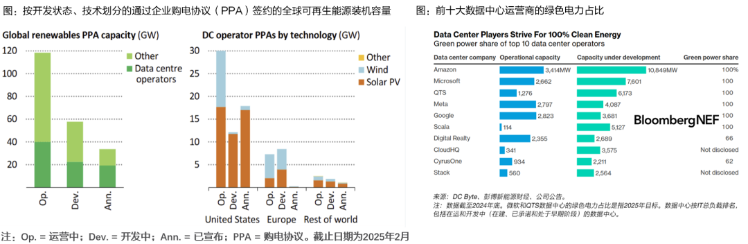 欧洲数据中心已签订的PPA中,风电占比中超50%,且海上风电占数据中心运营商签订PPA的在建容量的大部分。