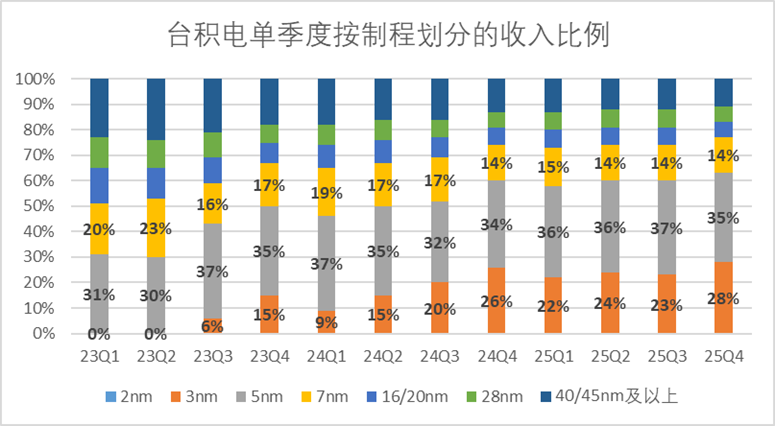 这主要得益于3nm制程产品的高增长,去年第四季度台积电3nm制程产品占收入比重达到了28%,环比提升了5pct。