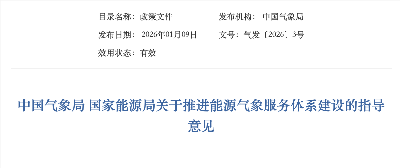 近日,中国气象局、国家能源局联合发布《关于推进能源气象服务体系建设的指导意见》(以下简称《指导意见》),《指导意见》明确要完成全国风电和光伏发电资源普查等20项重点任务。