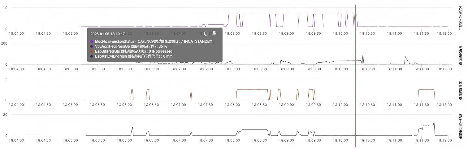 根据对用户授权的车辆数据进行分析,结果表明:事故发生前和事故发生时,车辆始终处于【NCA_STANDBY】状态,即辅助驾驶功能未激活。碰撞发生后,安全气囊等正常打开。