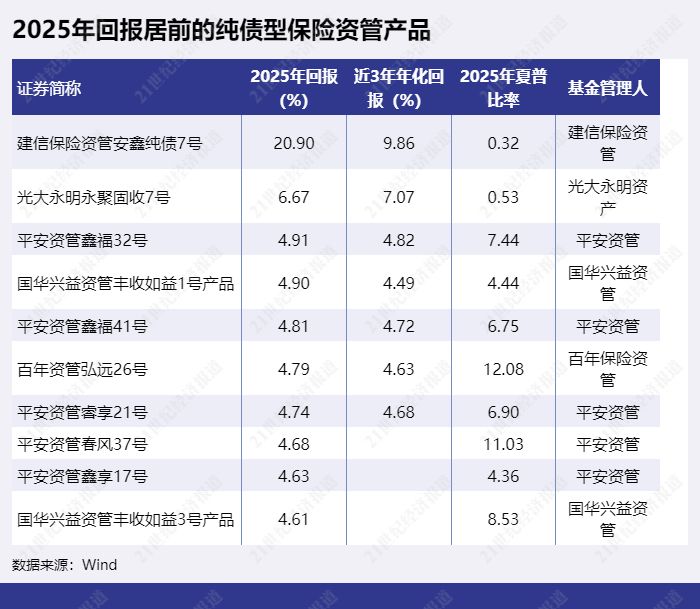 2025年纯债型产品平均回报排名靠后的保险资管公司则包括中意资产、永诚资产、工银安盛资管等。