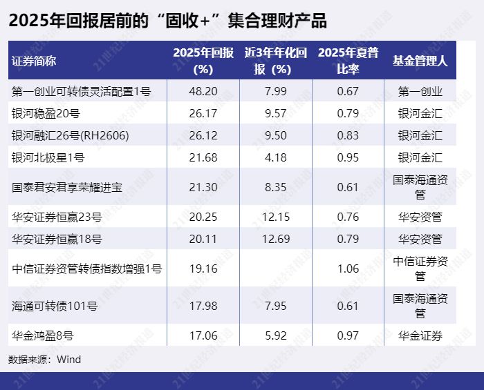 2、资管机构的“固收+”产品2025年整体表现