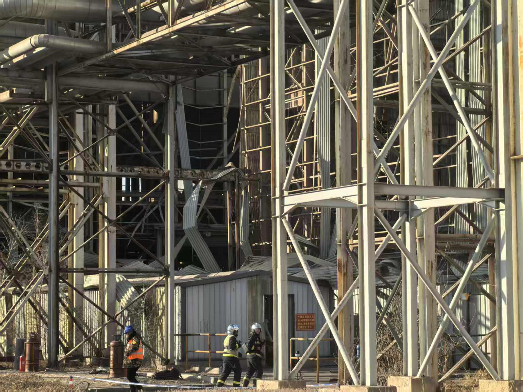 图为1月19日下午,厂区内部分厂房结构变形。记者张枨摄
