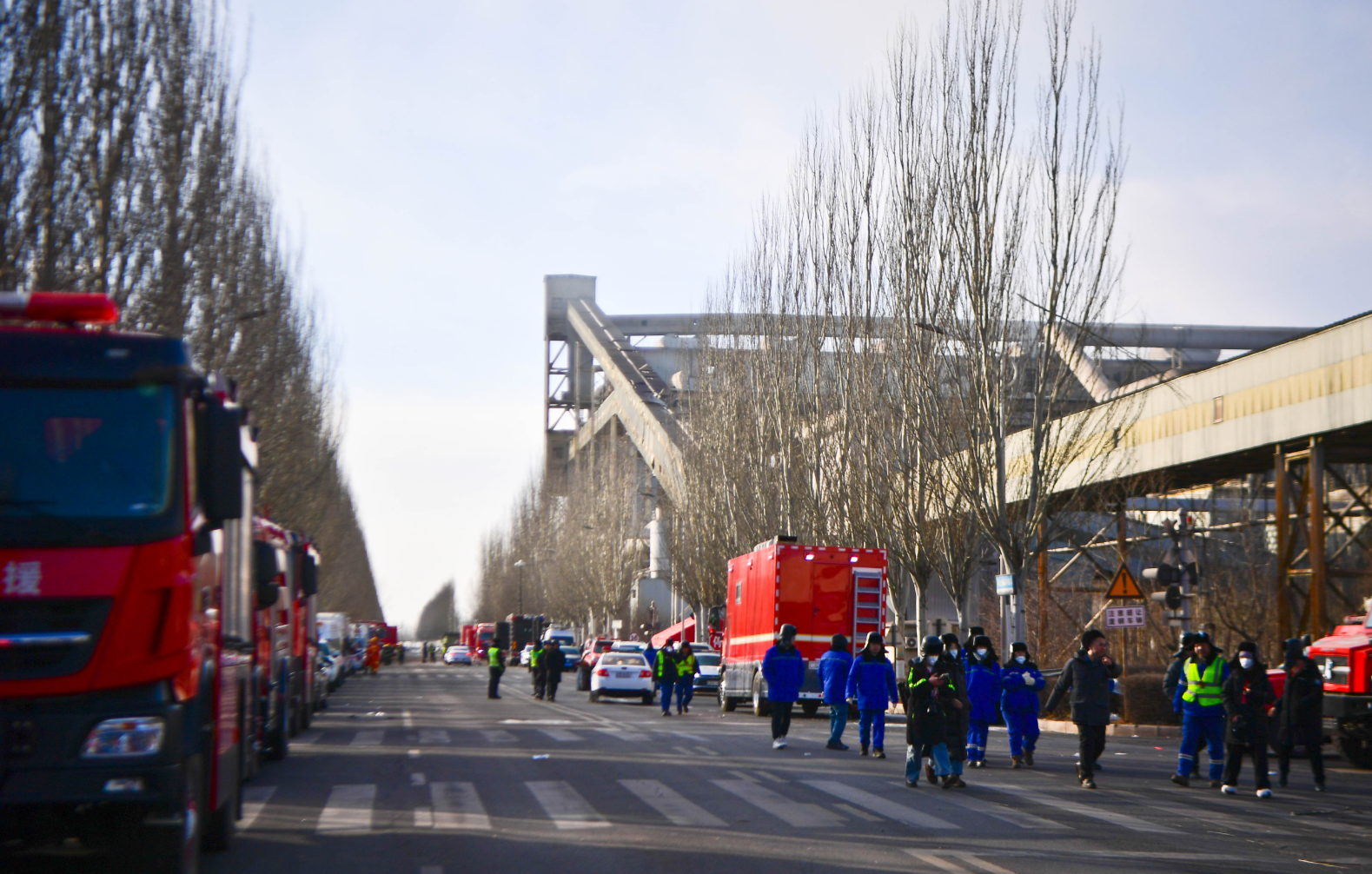 在事故现场可以看到,来自消防、应急、公安、医疗等多支专业救援队伍仍在如此寒冷的天气下,紧张开展排险救援工作,与时间赛跑。目前共有1192人参与救援。