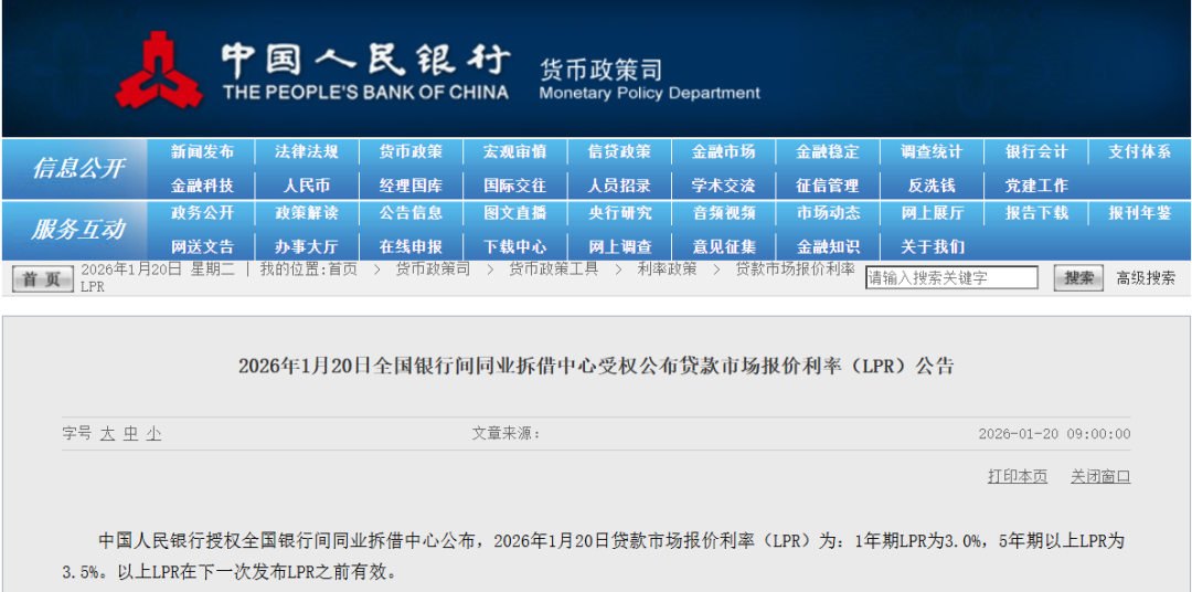1月20日,1月LPR(贷款市场报价利率)报价出炉,5年期和1年期利率均维持不变:5年期以上LPR为3.5%,上月为3.5%。1年期LPR为3%,上月为3%。