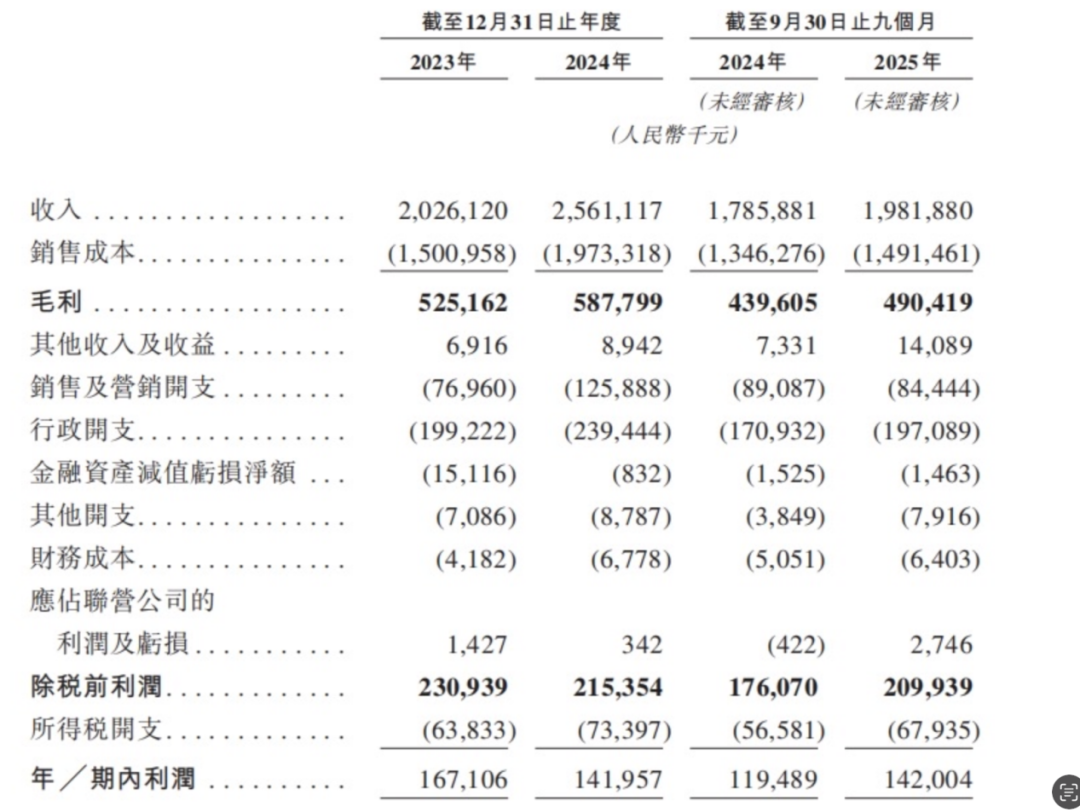 招股书显示,在“销售及营销开支”这一类目上,其2024年全年销售及营销开支激增至1.25亿元,同比大增63.6%,行政开支从1.99亿涨到2.39亿,侵蚀了当期利润;而截止2025年前三个季度,行政开支虽然下降至1.97亿元,但仍相当于2023年全年水平。可见,内部组织系统改革已在路上,但相应的成本也很难省。