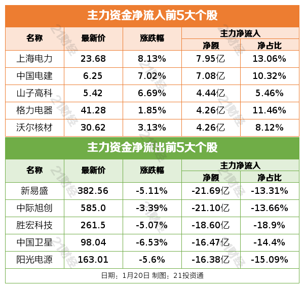 1月20日,三大指数集体收跌,沪指跌0.01%,深成指跌0.97%,创业板指跌1.79%。沪深两市成交额2.78万亿,较上一个交易日放量694亿。盘面上,全市场超3100只个股下跌。化工板块逆势爆发,贵金属概念延续强势,房地产板块表现活跃,AI应用端局部走高。算力硬件、商业航天等板块跌幅居前。