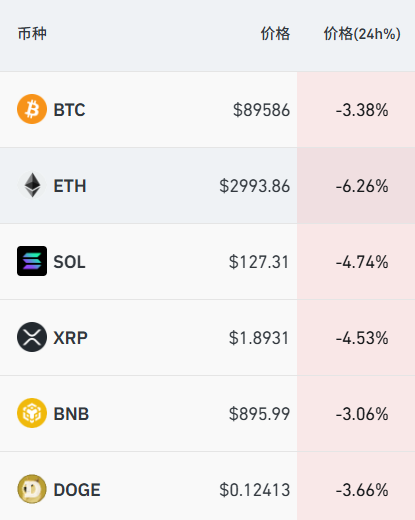 加密货币市场全线大跌。比特币跌破9万美元,以太坊跌破3000美元,全市场约16.3万人被爆仓。