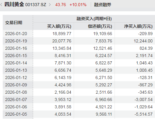 这背后,也伴随着四川黄金整体交投活跃度的快速增加,以及融资资金参与力度的显著提升。