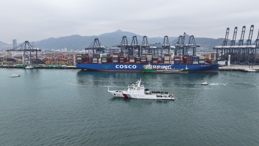 “针对本次船舶‘首航+首加注’的特殊性工作要求,盐田边检站紧密结合港区产业特点,制定‘一类一策’专属查验方案,推行‘一窗办理、一次办结’等便利举措,创新打造绿色甲醇通关‘快车道’,采取企业备案前置、搭靠办理前置、人员审核前置等服务举措,保障即到即靠、即靠即加,确保通关零延时、加注零等待、服务零距离。”深圳边检总站盐田边检站边防检查处副处长周祺谈到。
