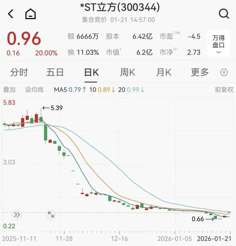 个股方面,面临强制退市警告和连续三年财务造假的指控,*ST立方开盘迅速20CM涨停,报0.96元/股,此前1月20日复牌收涨超19%。