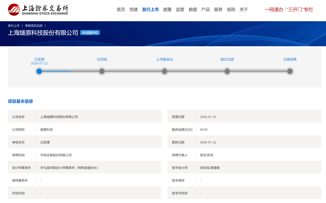 1月22日,据上交所官网,国产GPU厂商燧原科技科创板IPO申请已获受理,这也是2026年A股首单IPO新受理。