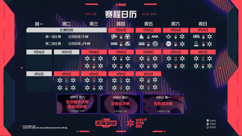 本次VCT CN联赛启点赛首次结合全国巡回形式举办,赛程也相应延长至三周,为参赛队伍带来更多挑战与机遇。十二支VCT CN顶尖战队——AG、BLG、DRG、EDG、FPX、JDG、NOVA、TE、TEC、TYLOO、WOL、XLG将齐聚广州。