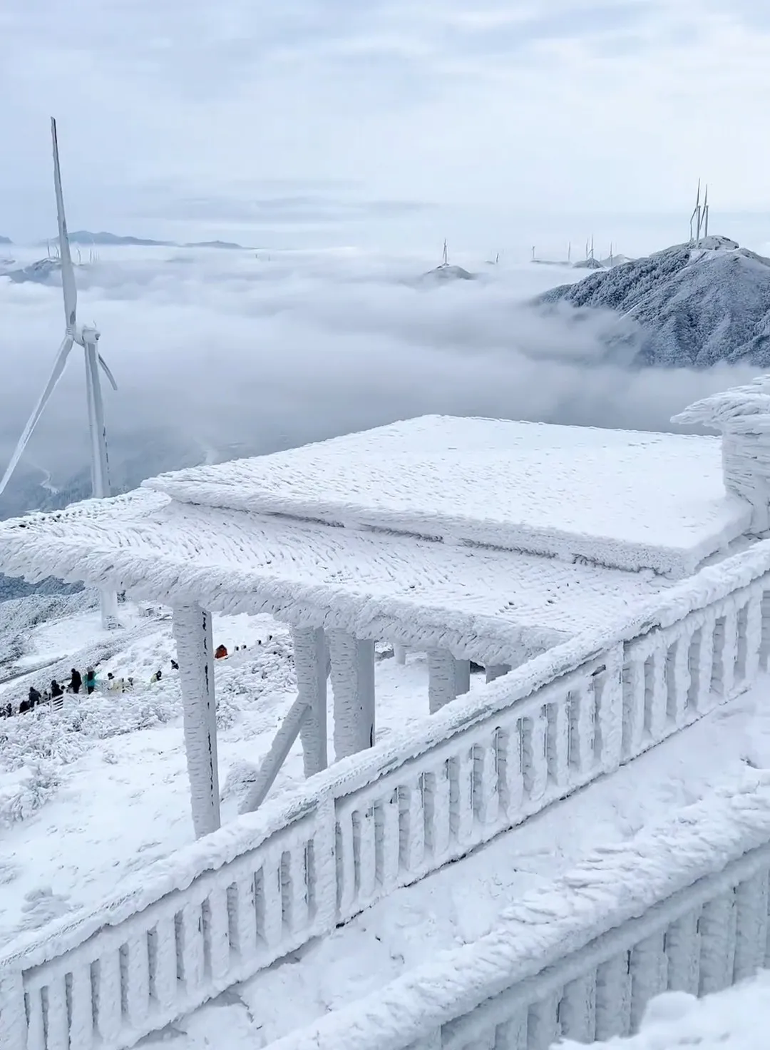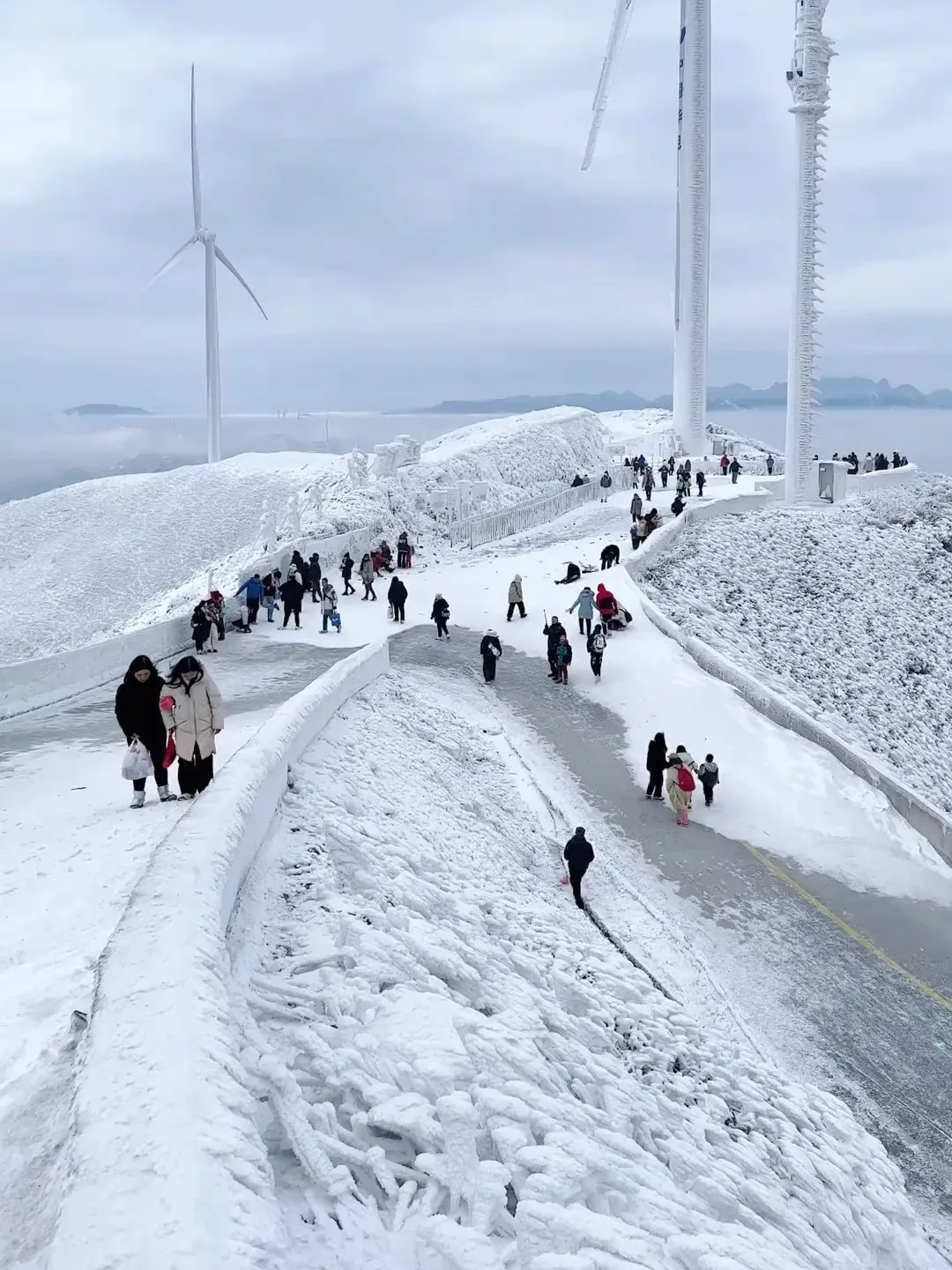 1月22日,连州潭岭水库和连山金子山雪景,图源@清远天气