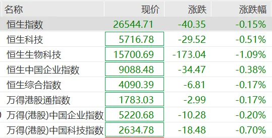 港股高开后回落,截至发稿,恒生指数跌0.15%,恒生科技跌0.51%,恒生国企跌0.38%。科网股多数走强,金蝶国际涨超3%,蔚来涨超1%,阿里巴巴、商汤、京东集团涨近1%。