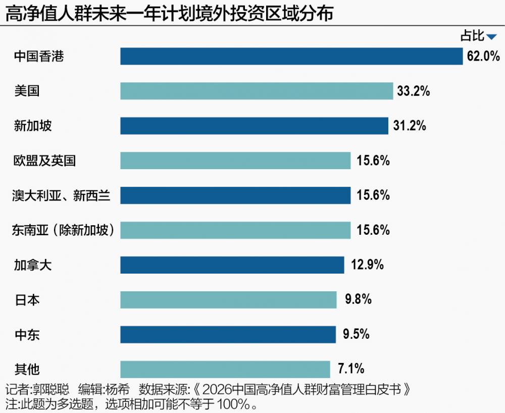 八是区域选择较为集中:中国香港(62.0%)、美国(33.2%)、新加坡(31.2%)位居第一梯队。高净值人群按地域优势进行差异化布局,通过中国香港承接保障与离岸人民币配置,通过美国获取权益及另类回报,通过新加坡实现稳健保全。