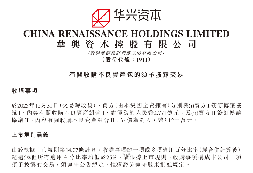华兴资本在公告中强调,对价是经公平磋商后厘定,已综合考虑债务逾期状况、历史与预期回收率、借款人特征、法律可执行性、文件完整性及预期回收成本等多重因素,并经过全面量化分析。