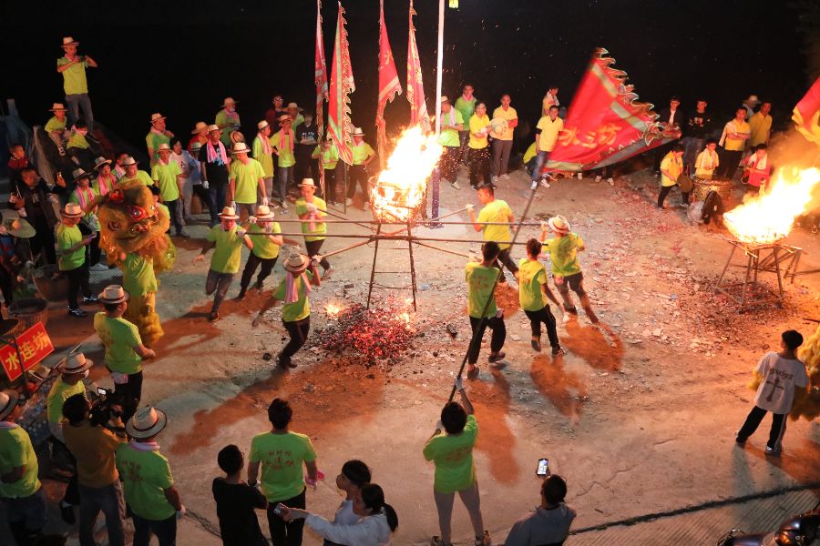 云浮新兴县民俗活动舞火篮。