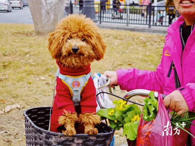 2026年1月,广州,从客运站农批汇买完菜的市民与宠物。