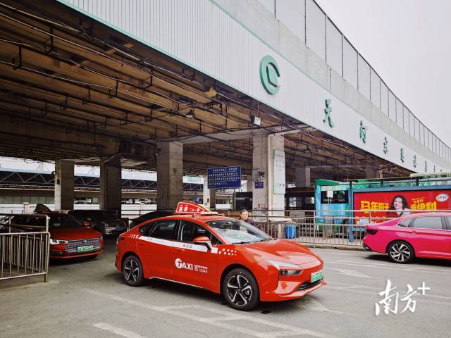 2026年1月,广州,天河汽车客运站,等候接客的出租车司机。