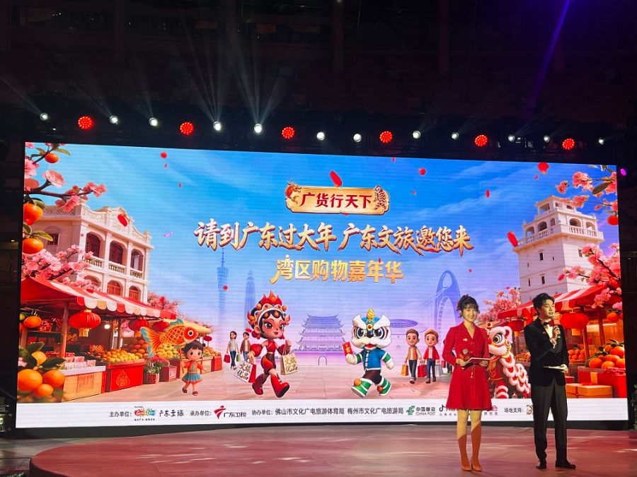 1月25日晚,“广货行天下,来粤过大年——湾区购物嘉年华”活动在广州海心沙举行发布仪式。南方财经记者获悉,活动以“广货+文旅”为核心,通过全域直播、微综艺传播、线下联动等形式,打造沉浸式新春文旅消费盛宴。