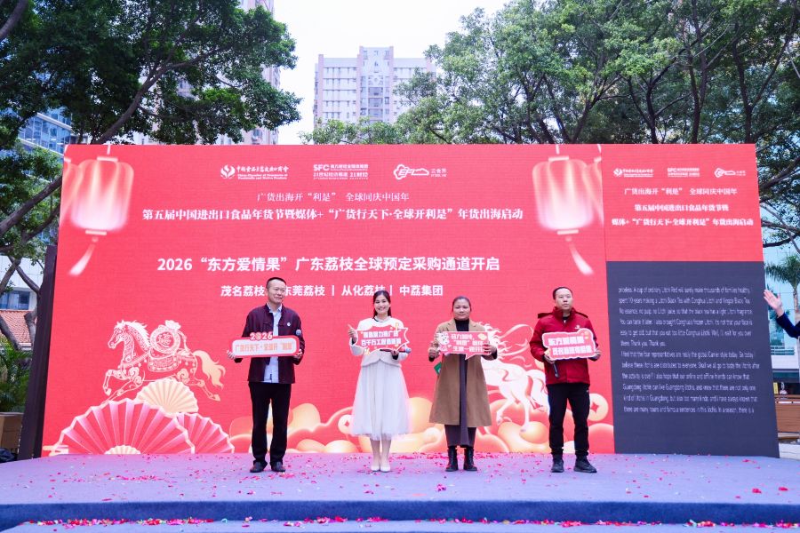 1月23日,在第五届中国进出口食品年货节暨“广货行天下·全球开利是”年货出海活动启动仪式上,2026“东方爱情果”广东荔枝全球预售采购通道正式开通。中荔集团、茂名供销社、东莞荔枝协会、从化荔枝产业联盟等产区的代表企业联合推介广东荔枝品牌,并与全球采购商进行对接。来自广东各个主产区的优质荔枝及其衍生产品,将通过这一通道直达全球市场,进一步推动广东荔枝实现全年可供、全球可达。